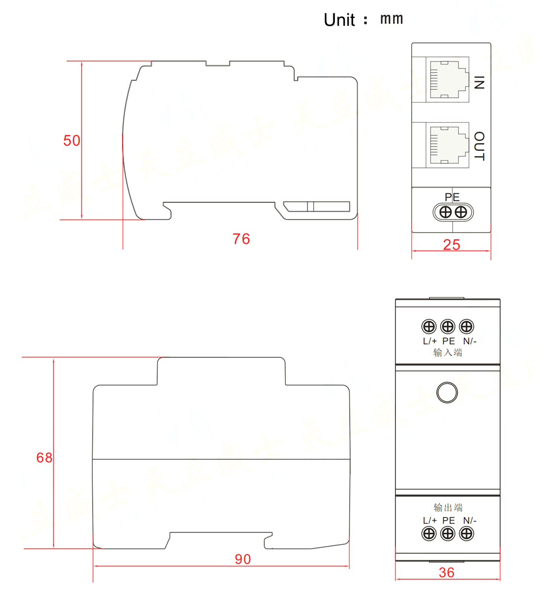 Guide rail 100M POE network lightning protector |
