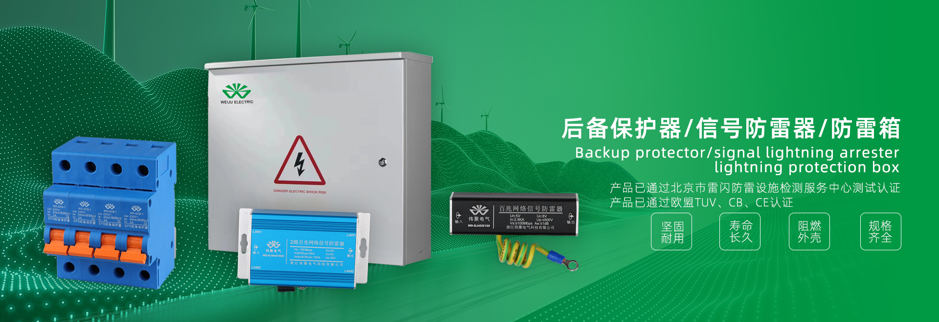 浙江伟聚电气科技有限公司是一家期集研发,生产,销售为一体的高科技企业,公司具备强大的自主创新能力,其中用于低压配电,光伏,通信专用的电涌保护产品在行业内具有领先水平已率先通过了TUV,CE,CB,北京雷闪检测等认证。